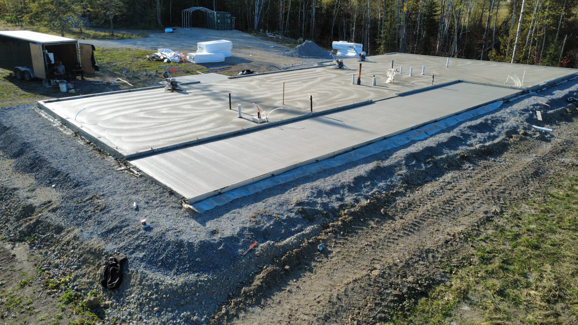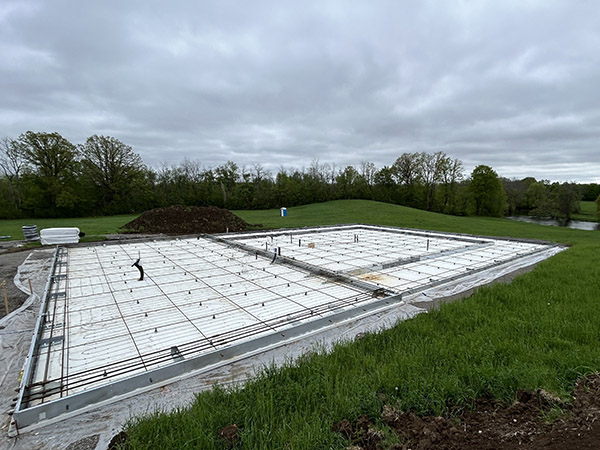 The MK5 Foundation requires a drain base as the “bottom” of the form. Heavy excavation is not required. Not digging down into the natural soils.